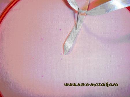 Чтобы закрепить ленту, после того как вы завершили работу. Выведите её на изнанку и очень осторожно, сделав небольшую петельку, проведите иголку под стежками вышивки.